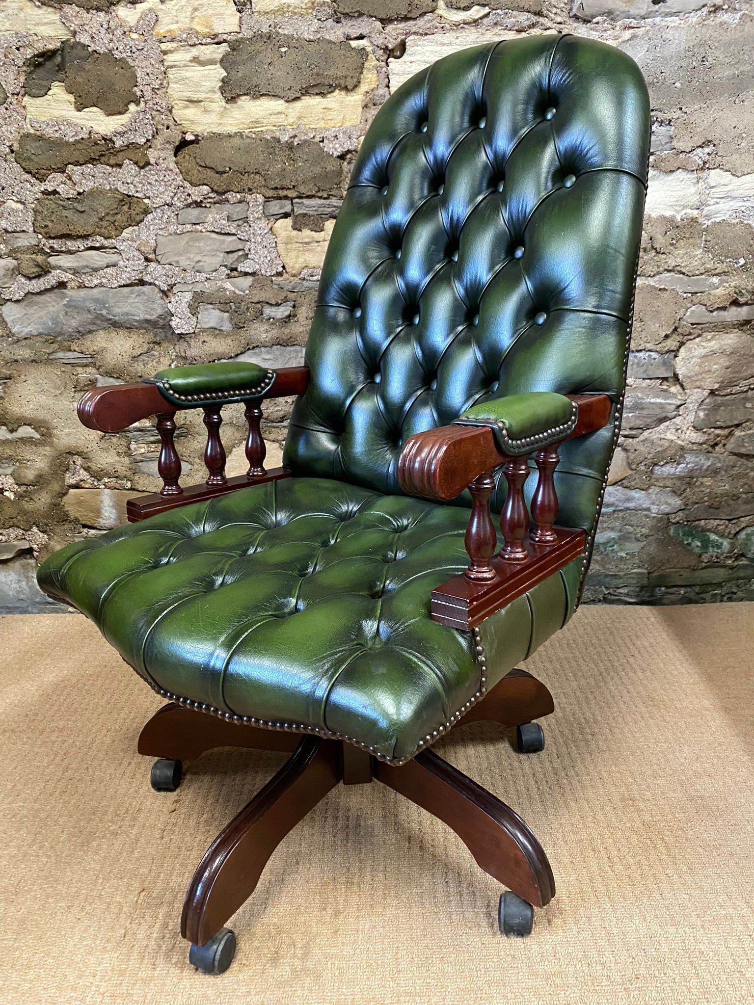 Vintage High Back Aged Brown Leather Chesterfield Captains Directors Chair At 1stdibs