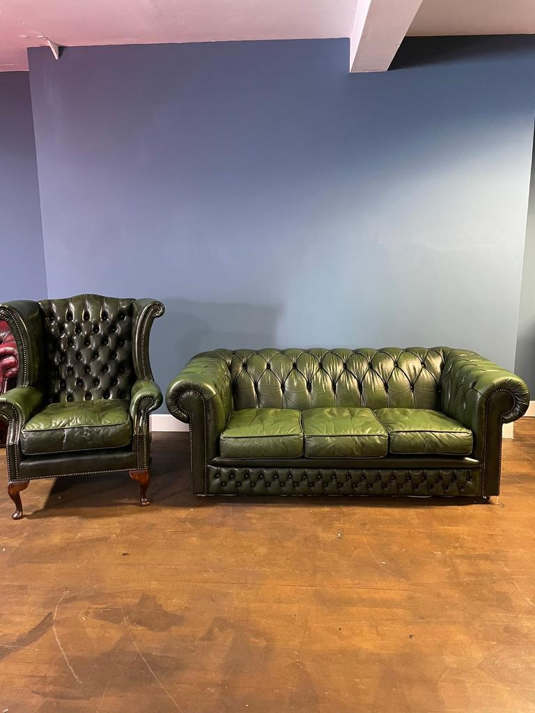 Superb Green Leather Chesterfield 3 Seater And Wingback Chair In Sunderland Tyne And Wear Gumtree